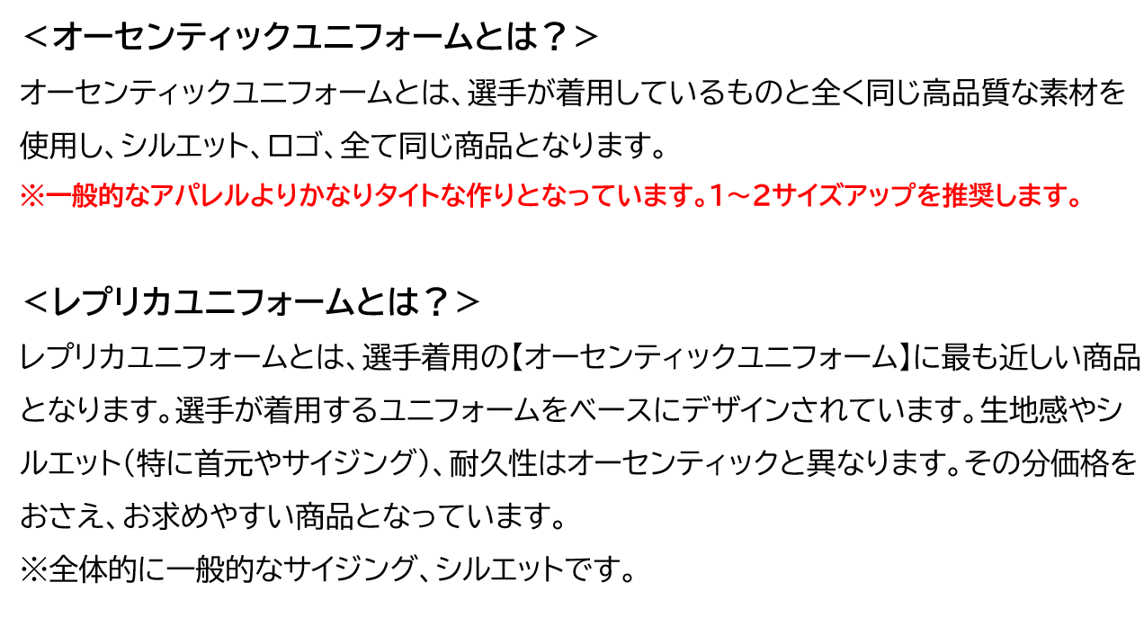 ※オーセンティックユニフォームとは素材感(光沢感含む)が異なります。