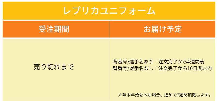 ※背番号/選手名ありと背番号/選手名なしを同時に購入した場合、背番号/選手名ありのお届けに合わせて配送します。